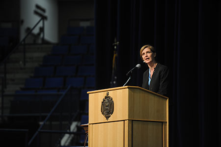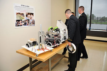 After the ceremony, the award winners mingled with midshipmen at an event reception. The future Navy and Marine Corps officers had the opportunity to talk with the 2016 distinguished graduates about their careers and experiences.